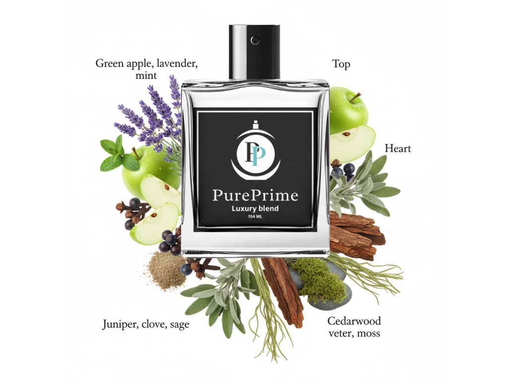 Hlavní tóny: Bazalka, Máta, Zelené jablko, Cedrové dřevo, Pačuli