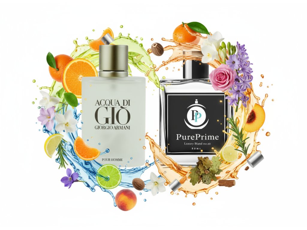 PurePrime Parfém inspirovaný vůní Giorgio Armani Acqua di Gio – elegantní a svěží vůně pro muže, kteří chtějí zanechat nezapomenutelný dojem.